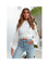 Blusa Cropped de Renda Branca com Manga Longa Bufante