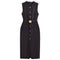 Vestido Midi Preto Alfaiataria Feminino com Botões e Cinto Dourado